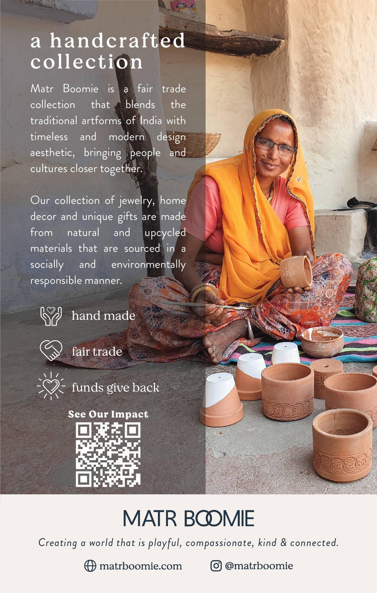 The Andhera 4x6 Black Picture Frame features hand carved black horn with a brass inner frame inlay, in a gold tone finish. The sleek dark combination of black and gold is reminiscent of art deco with a modern minimalist twist. This gender neutral color combination would make a great gift for him or her, suit a variety of interior spaces and make a versatile gift for special occasions where memories are created, such as birthdays, housewarmings and anniversaries. Frame features a two-way easel back, metal swivel tabs to access opening, glass cover and a metal d-ring for hanging vertically. All of Matr Boomie's collections are artisan made, fair trade, and sustainable.