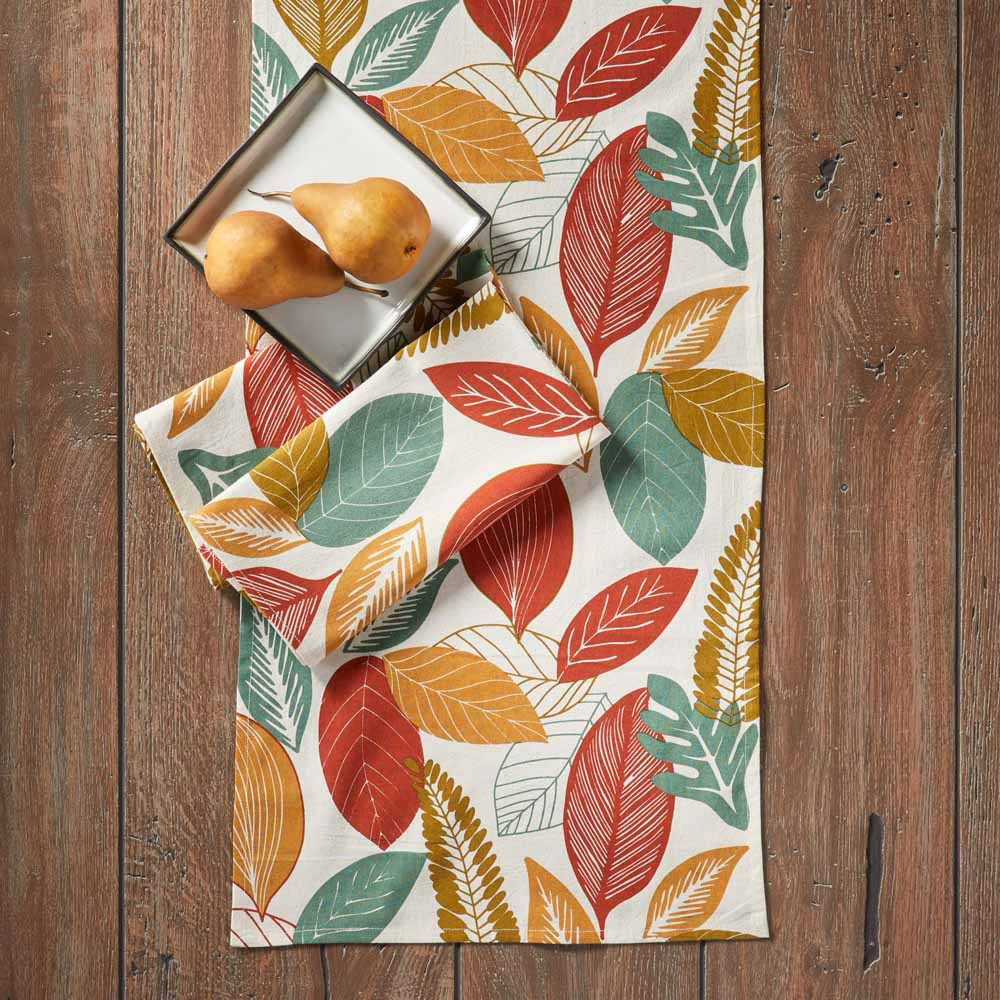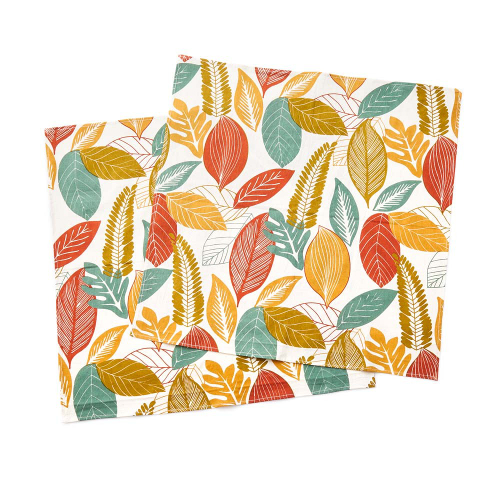 Bring bold and beautiful to your table. These 100% cotton screen-printed napkins bring the colors of the harvest to your home, with bold prints and outlines of various fall leaves scattered across a natural background. Machine wash. Dimensions: 20"sq.
