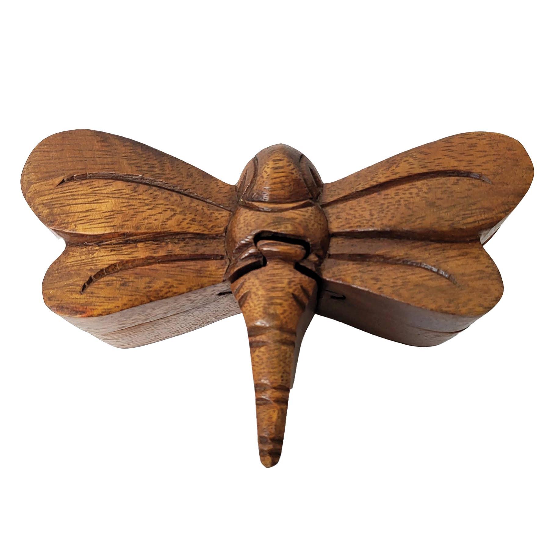 Dragonfly Carved Wooden Puzzle Box: 5.5" x3.5"x2.5"
