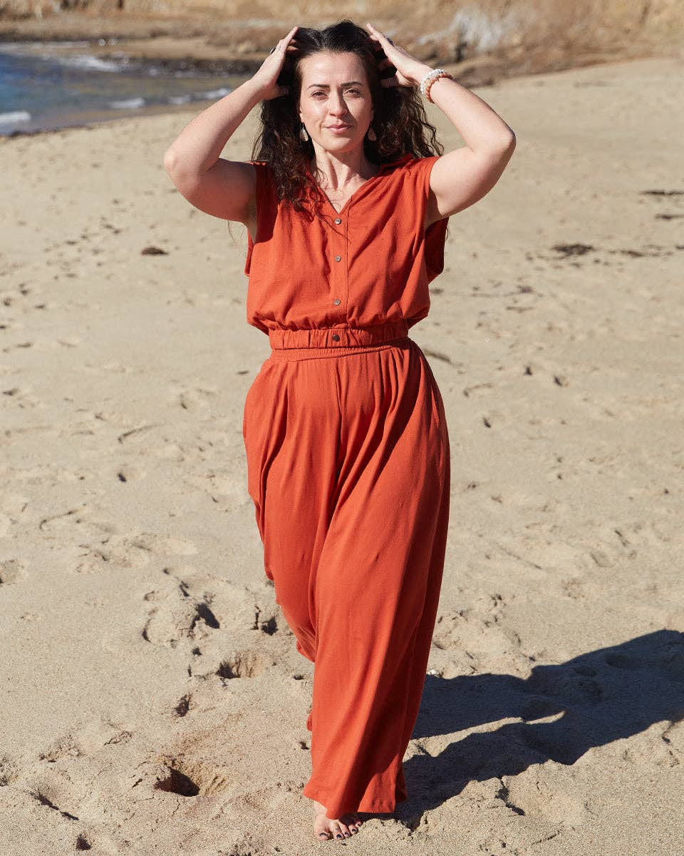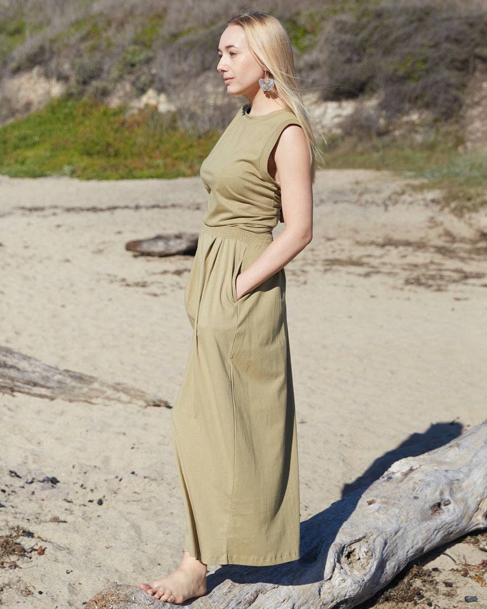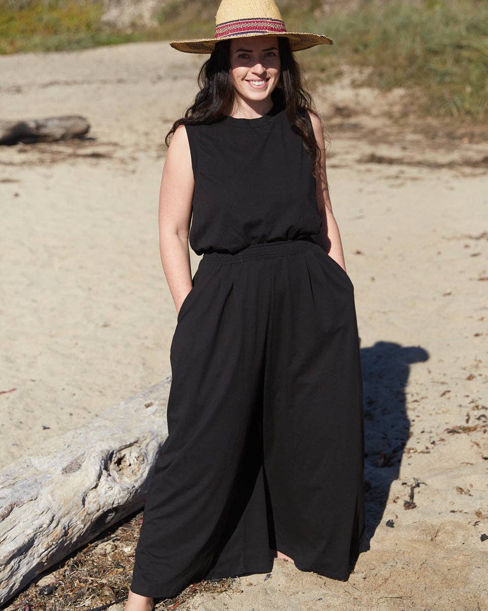 These simple wide leg pants are made with a soft organic cotton and have an elastic waist. Can be paired with Organic Button Down Top and Organic Tank Top * 100% organic cotton * one size, fits up to size 12 *
