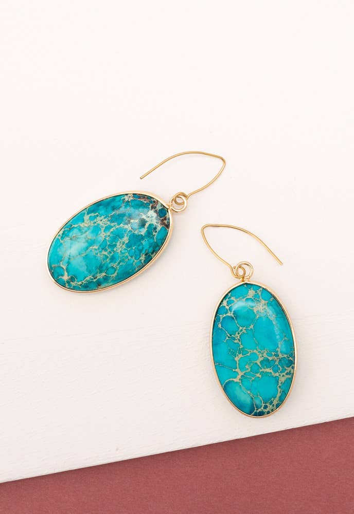 We are thrilled to bring you the unique Tranquil Earrings crafted in 14K plated gold and Emperor Stone, a unique and rare stone with a rich, deep green color and striking white marbling. The peaceful hues of the stone are polished to a high shine, catching the light and reflecting a subtle glow. Whether dressed up or down, these earrings are perfect for any occasion. At Starfish Project, we believe that every woman deserves to feel beautiful and confident, which is why we have packaged these earrings in our signature gift box that makes them perfect for gifting to a loved one or as a special treat for yourself. With the Tranquil Earrings, you can make a statement and stand out from the crowd while sharing your hope with survivors of human trafficking and exploitation.