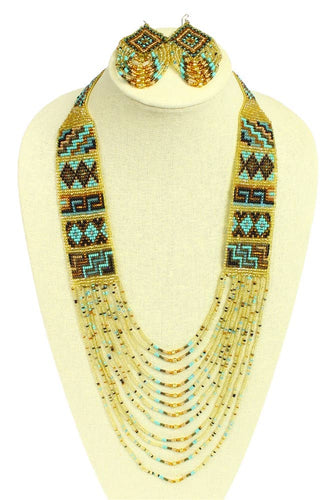 Turquoise and Gold Mesa Necklace Gorgeous Hand Beaded Unique