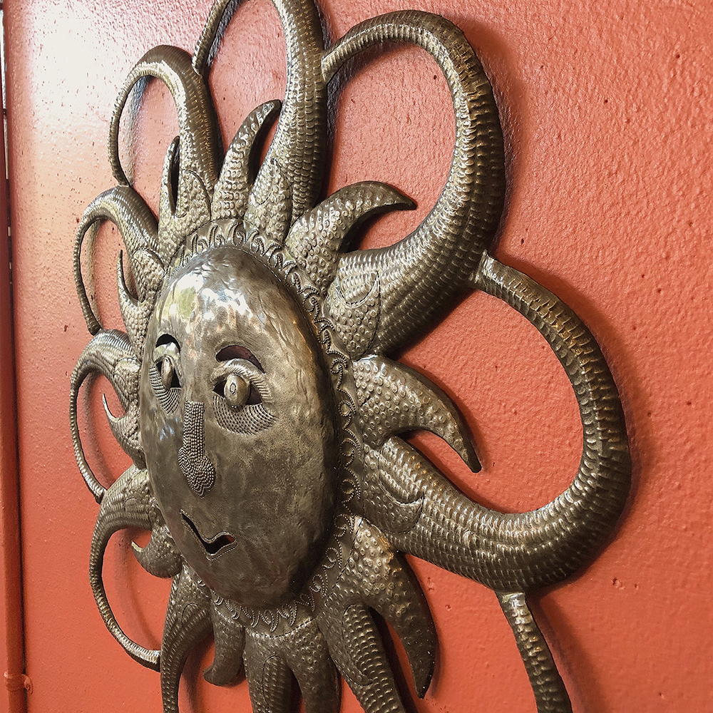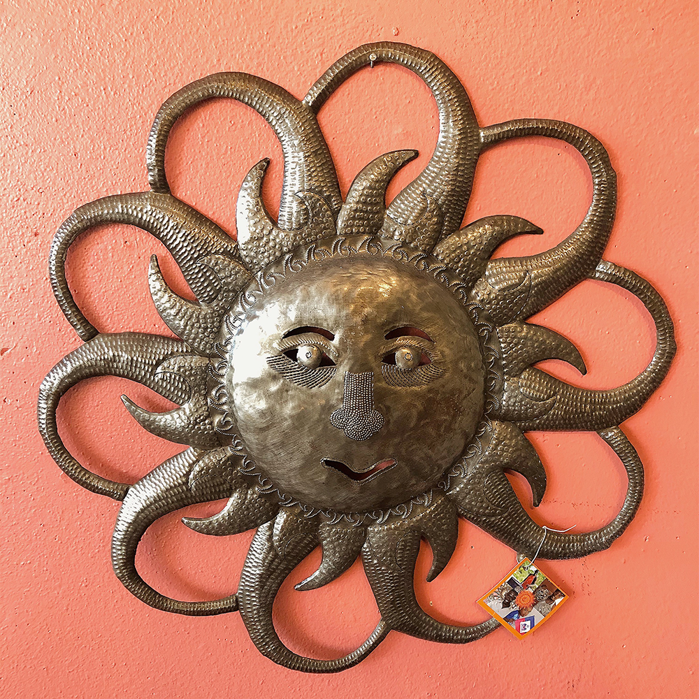 Handmade in Haiti from recycled and reused oil drums.