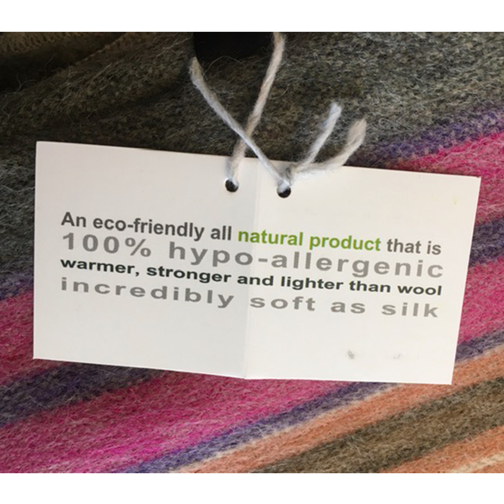 This Alpaca Throw is thin and lightweight yet extremely warm. It is made from Peruvian Alpaca fibers which due to its unique cellular structure, it boasts excellent thermal and insulating properties. It is also 100% hypoallergenic!