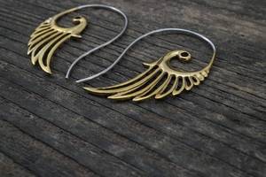 Sweet and graceful Feather earrings. These beautiful earrings are a perfect medium size for everyday wear. At 1.75 inches long, they are light enough to wear all day long without any tug on the ear. The wing design is solid brass with a solid sterling silver earwire.