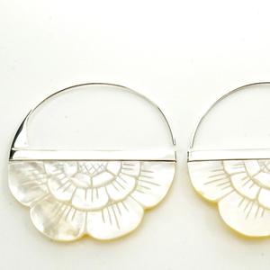 Beautifully carved mother of pearl flowers set in a solid sterling silver bezel with standard gauge ear-wire for all standard pierced ears. Both sides of each earring are carved with the same care and intricacy. Perfect for every occasion, from everyday wear to a special night out. Lightweight and gorgeous!