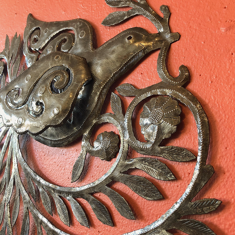 Handmade in Haiti from recycled and reused oil drums.