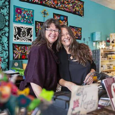 New Traditions Café and World Folk Art is owned by Jody Mackey and Stacy Muguet, two entrepreneurial women with a shared vision of service to the community.